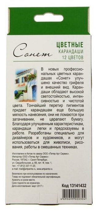 Карандаши художественные цветные "Сонет", 12 цветов информация: