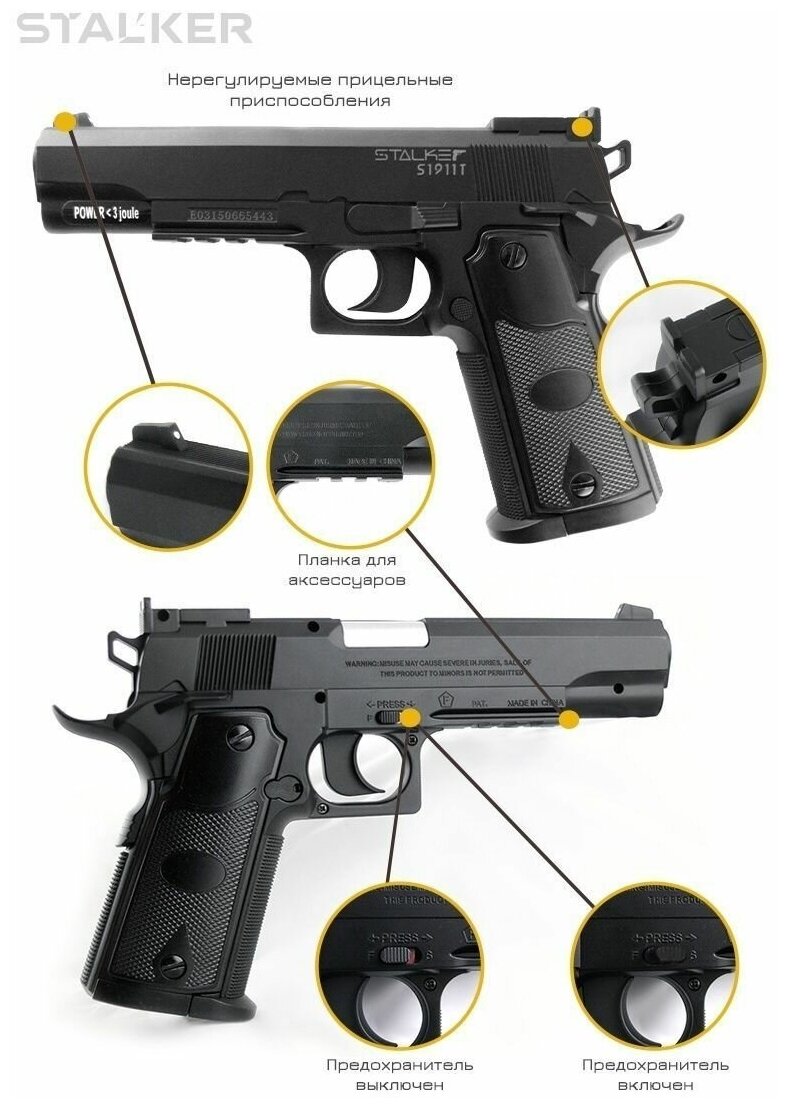 Пневматический пистолет Stalker S1911T (colt) 4,5 мм информация: