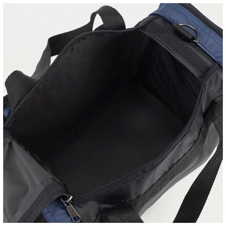 Сумка дорожная на молнии, с увеличением, наружный карман, длинный ремень, цвет чёрный/синий