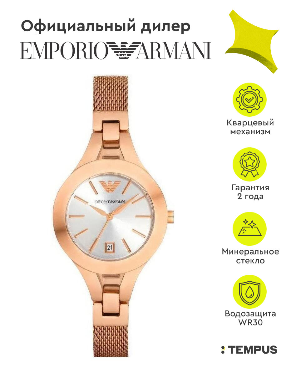 Часы наручные женские Emporio Armani AR11609 кварцевые на стальном браслете золотистого цвета с минеральным стеклом водонепроницаемостью WR50 (5 атм)