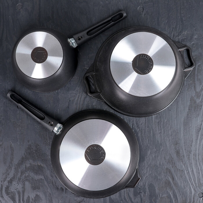 KUKMARA Набор кухонной посуды «Традиция №1», антипригарное покрытие, крышка, цвет чёрный информация: