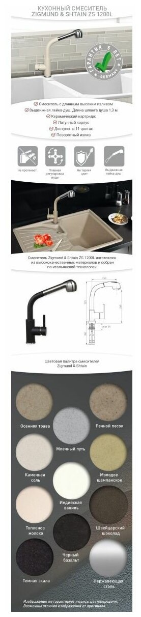 Смеситель Zigmund & Shtain ZS 1200L Нержавеющая сталь информация: