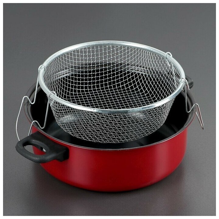 10 цен на Кастрюля «Ренард», 4 л, антипригарное покрытие, стеклянная крышка, сетка фри 26×9 см, цвет красный