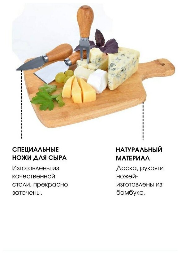 10 цен на Набор для сыра с ножами, доска для подачи "Termico", бамбук, 28*20*3,8 см.