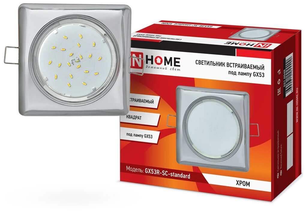 Светильник встраиваемый IN HOME GX53R-RC-standard металл под лампу GX53 230В хром информация: