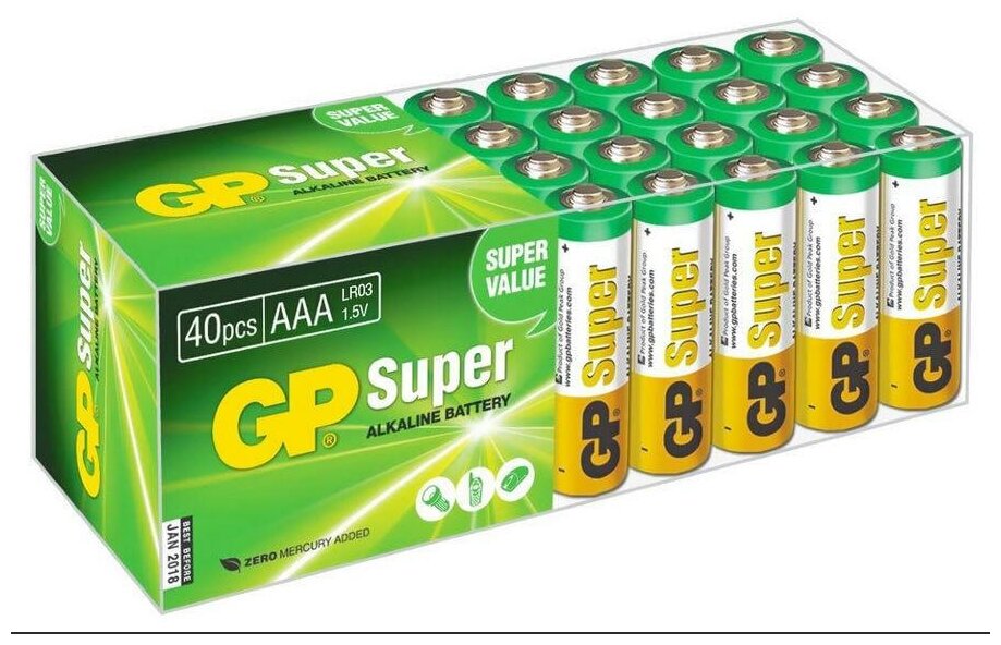 Батарейка GP Super Alkaline 24A LR3 AAA, 40 шт информация: