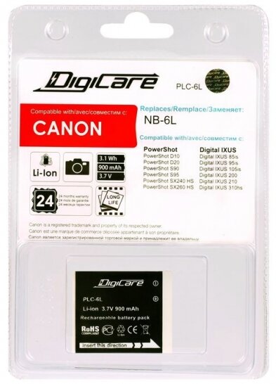 Аккумулятор DigiCare Plc-6l / Nb-6l / PowerShot Sx270, Sx280, Sx500, SX260 HS, Sx500, Ixus 310 HS .