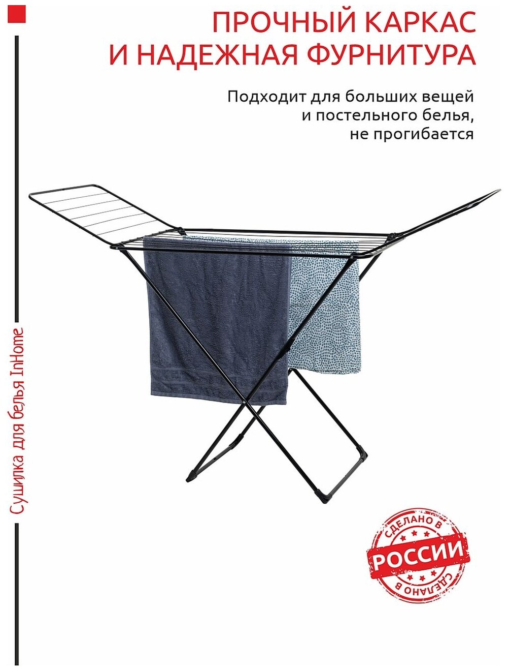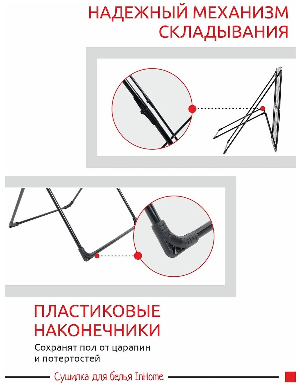Сушилка для белья InHome напольная раскладная,181x54х108 см, 18 м черная INCD1/1 .