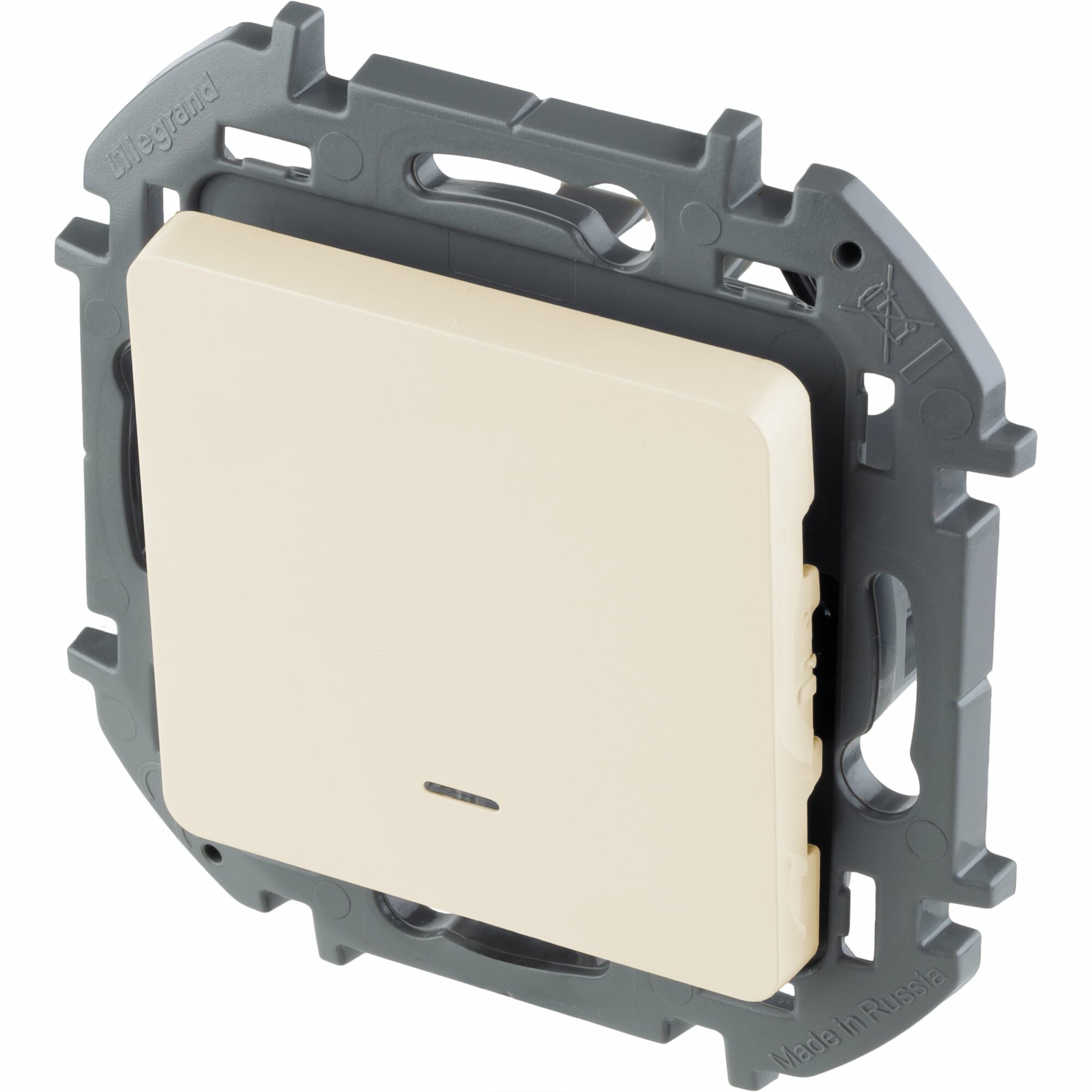 Выключатель 1-но клавишный с подсветкой Legrand Inspiria для скрытого монтажа, цвет - слоновая кость