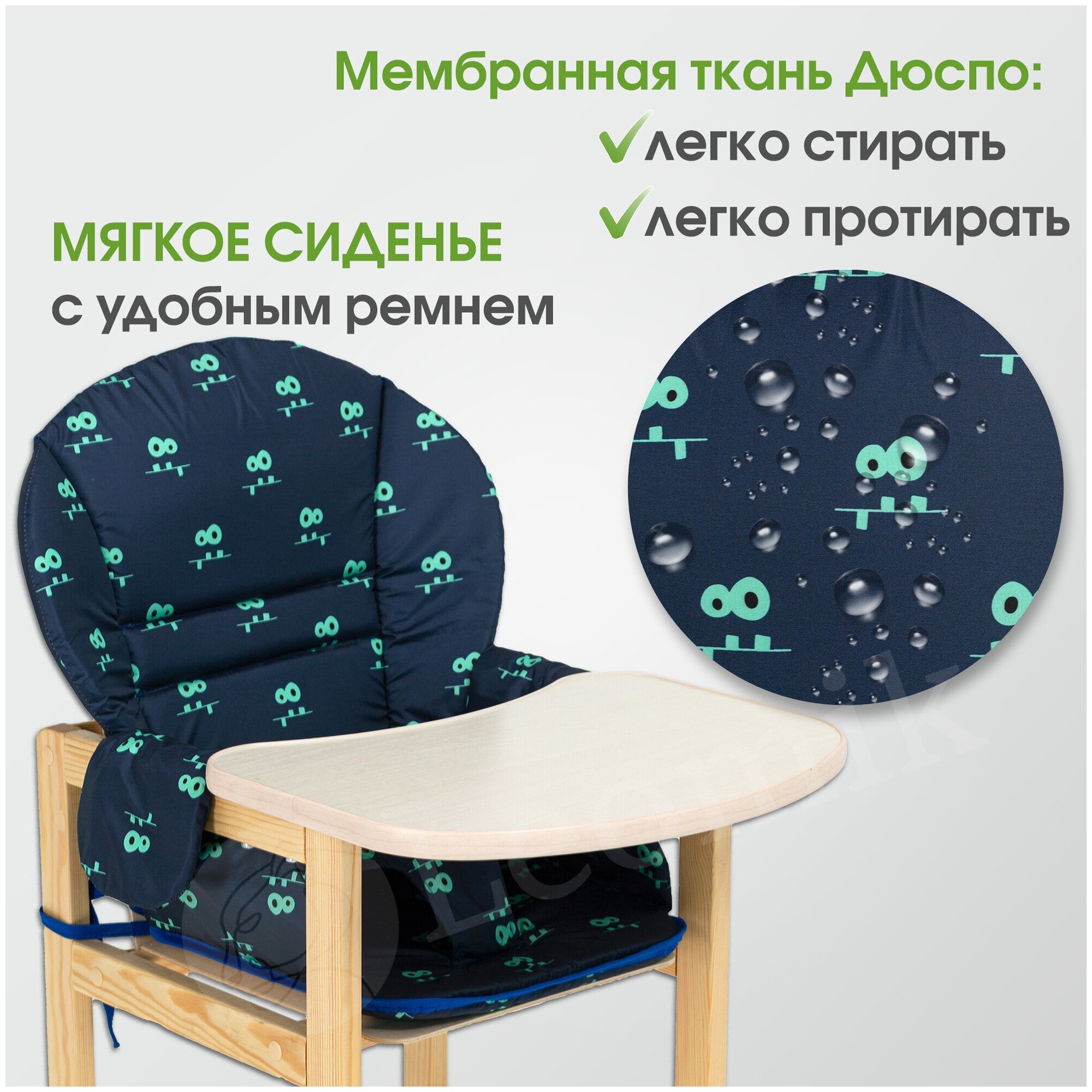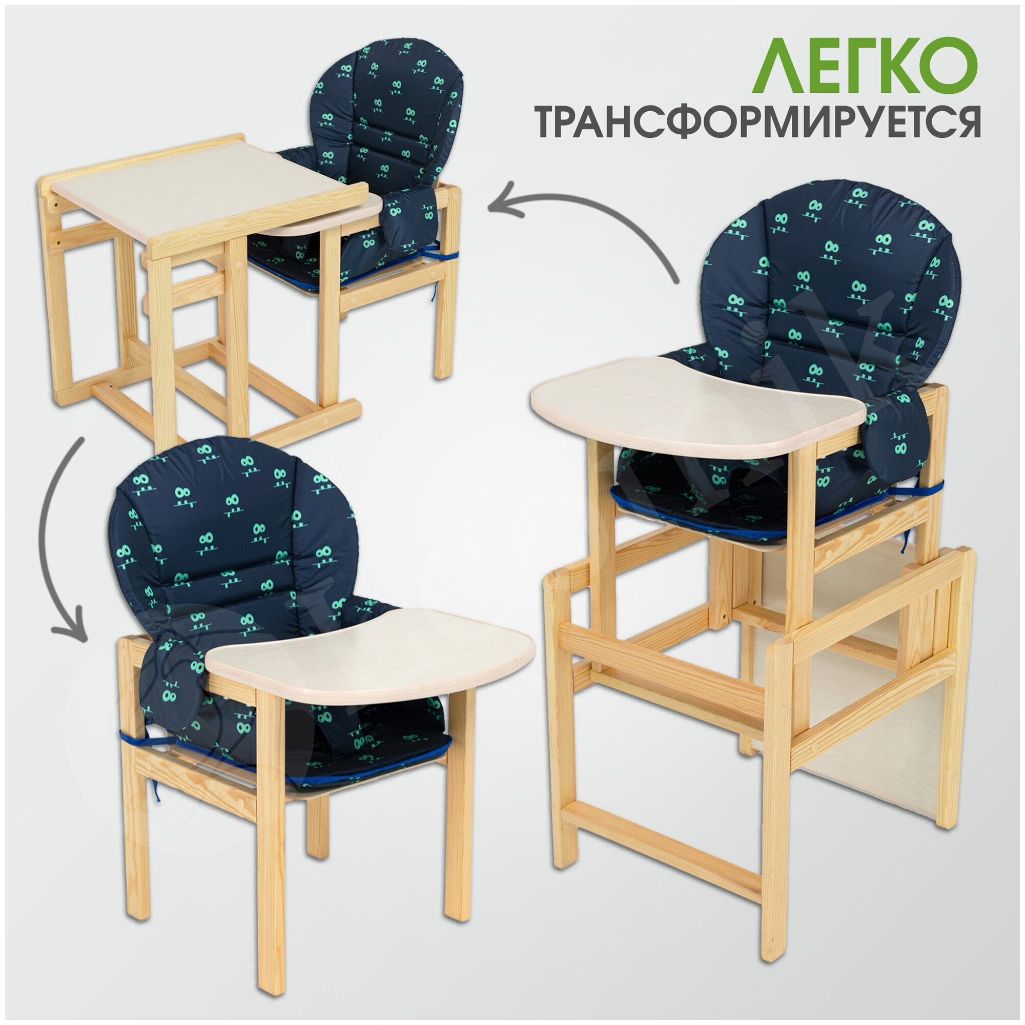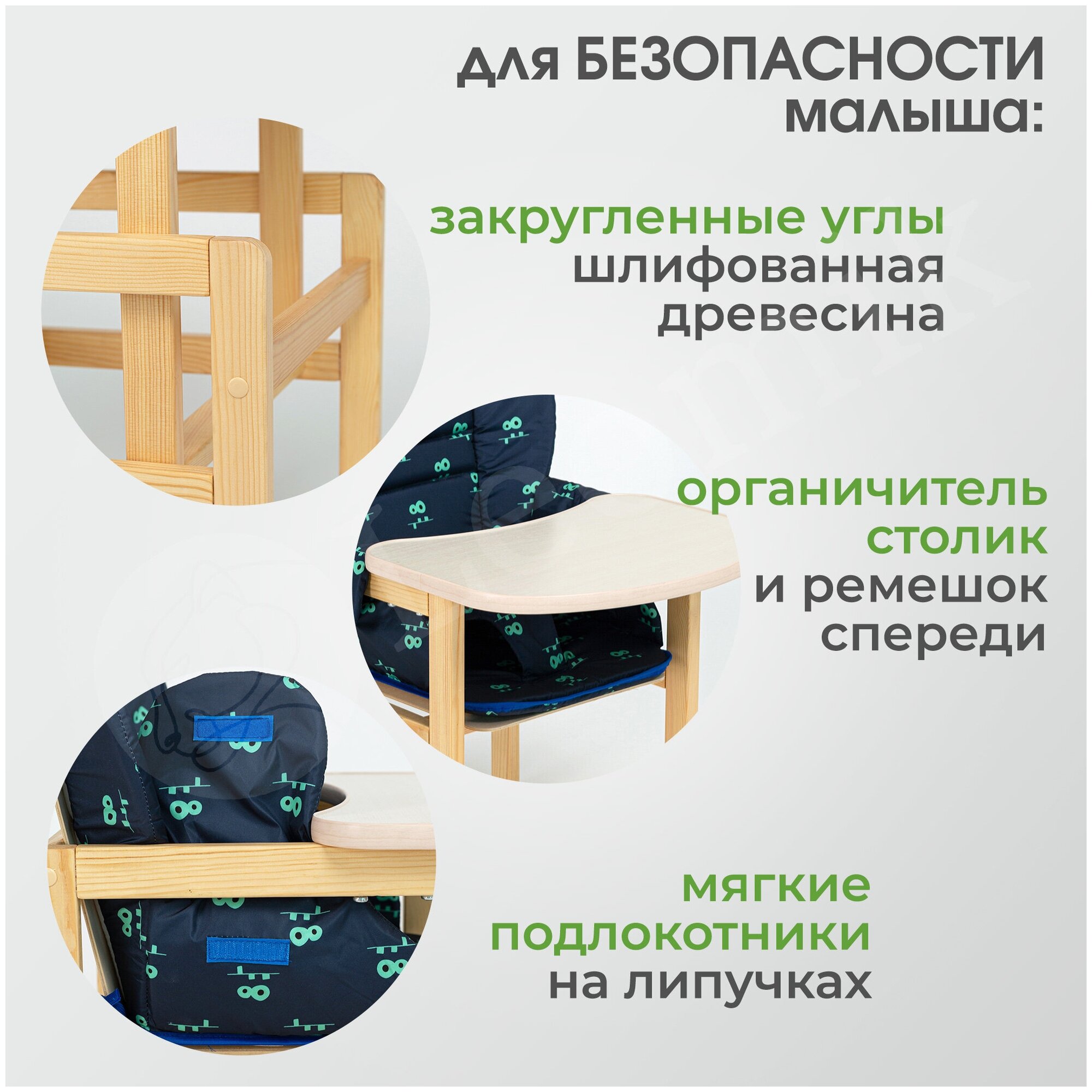 10 цен на Стульчик для кормления детский с чехлом / Стол и стул трансформер 2 в 1 натуральное дерево/ Антошка-Алиса/ Темно-синий