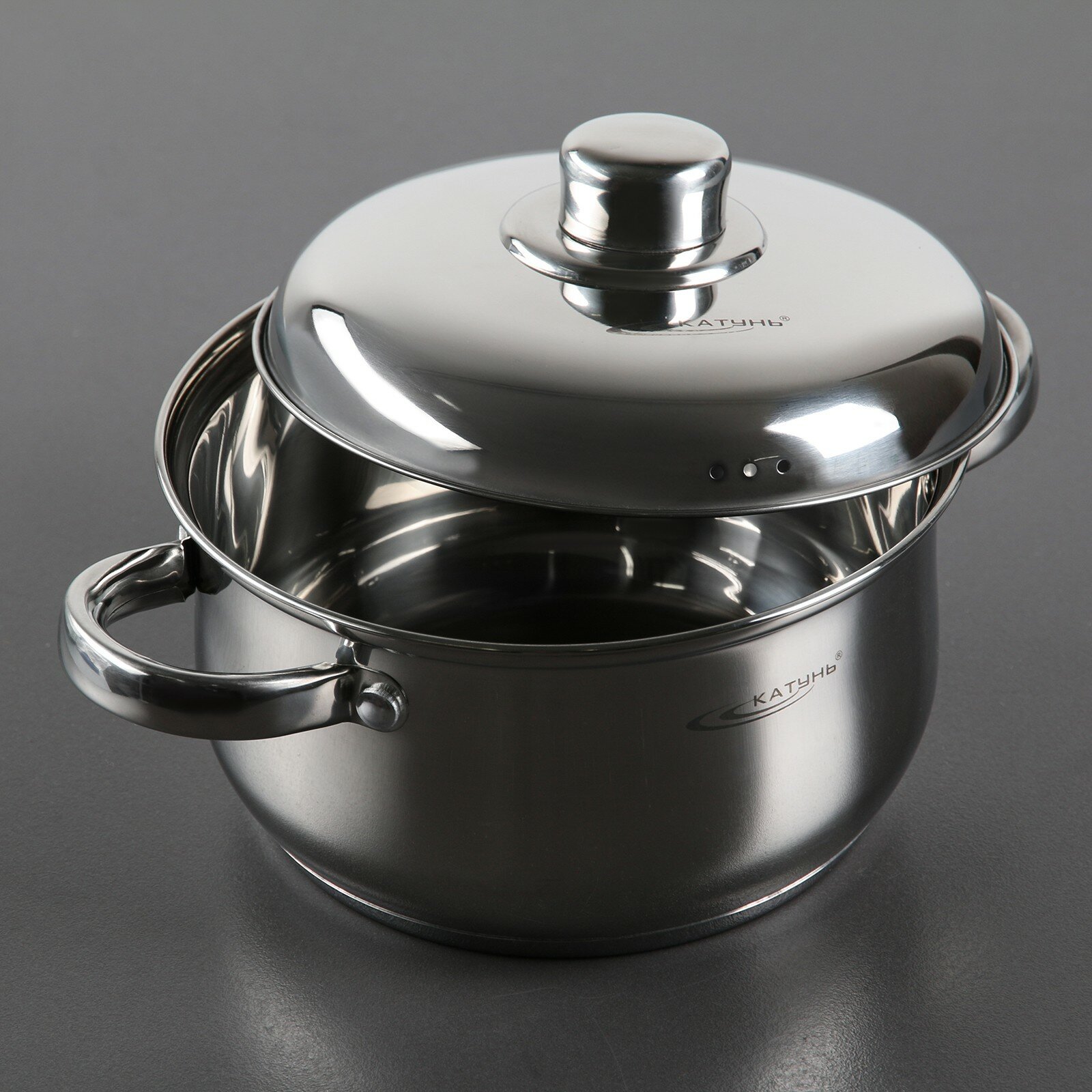 Белая калитва Кастрюля, 6 л, полусферическая, металлическая крышка, цвет хромированный
