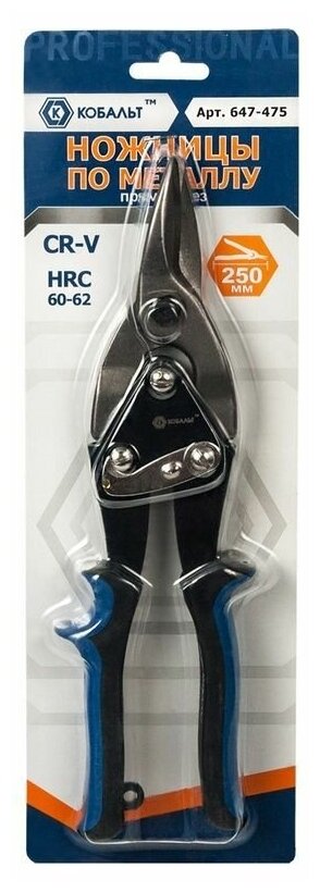 Ножницы по металлу ручные кобальт прямой рез 250 мм, CR-V (1 шт.) блистер (647-475)