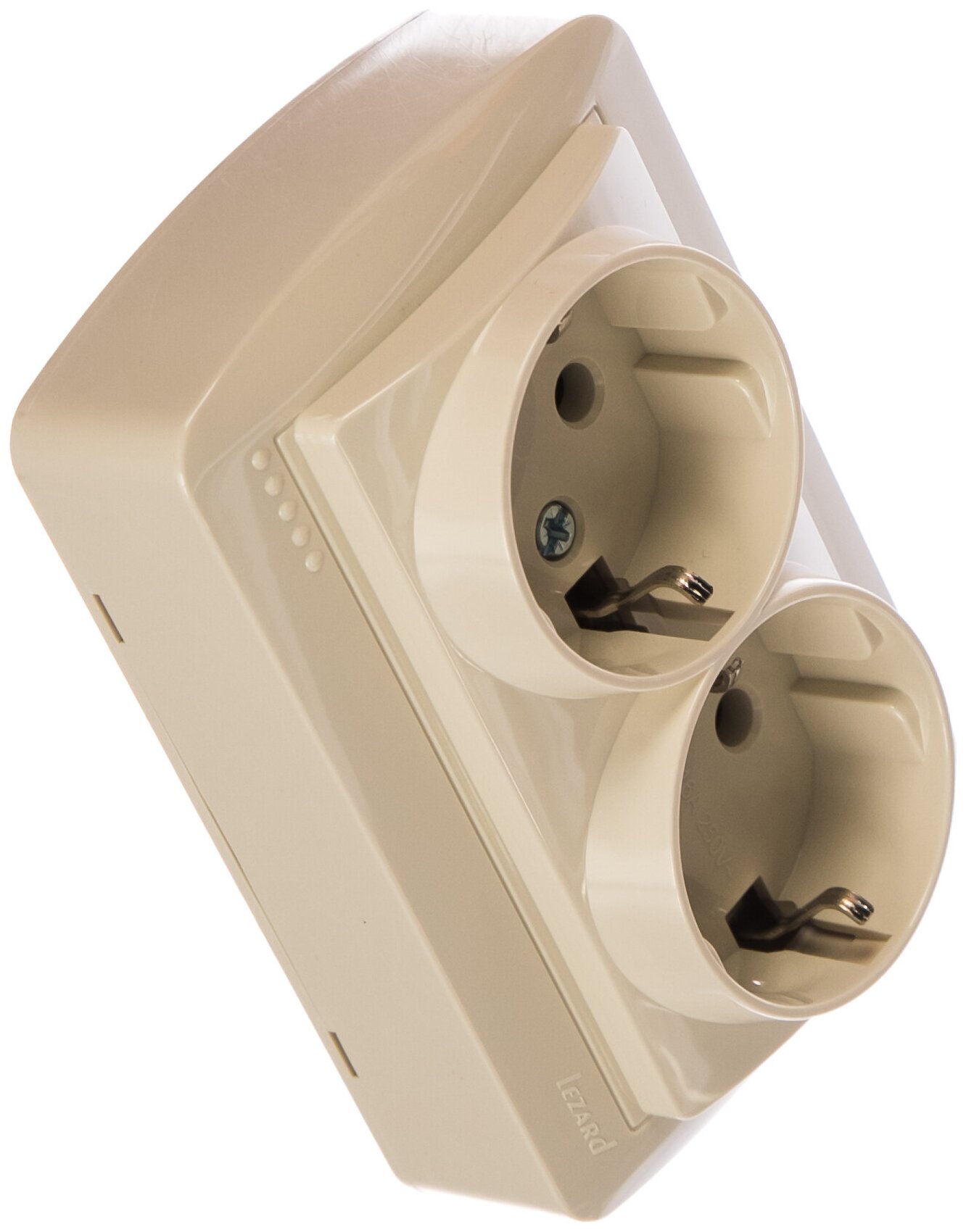 Двойная розетка Lezard DEMET, с заземлением, закрытый корпус, крем, 711-0300-127