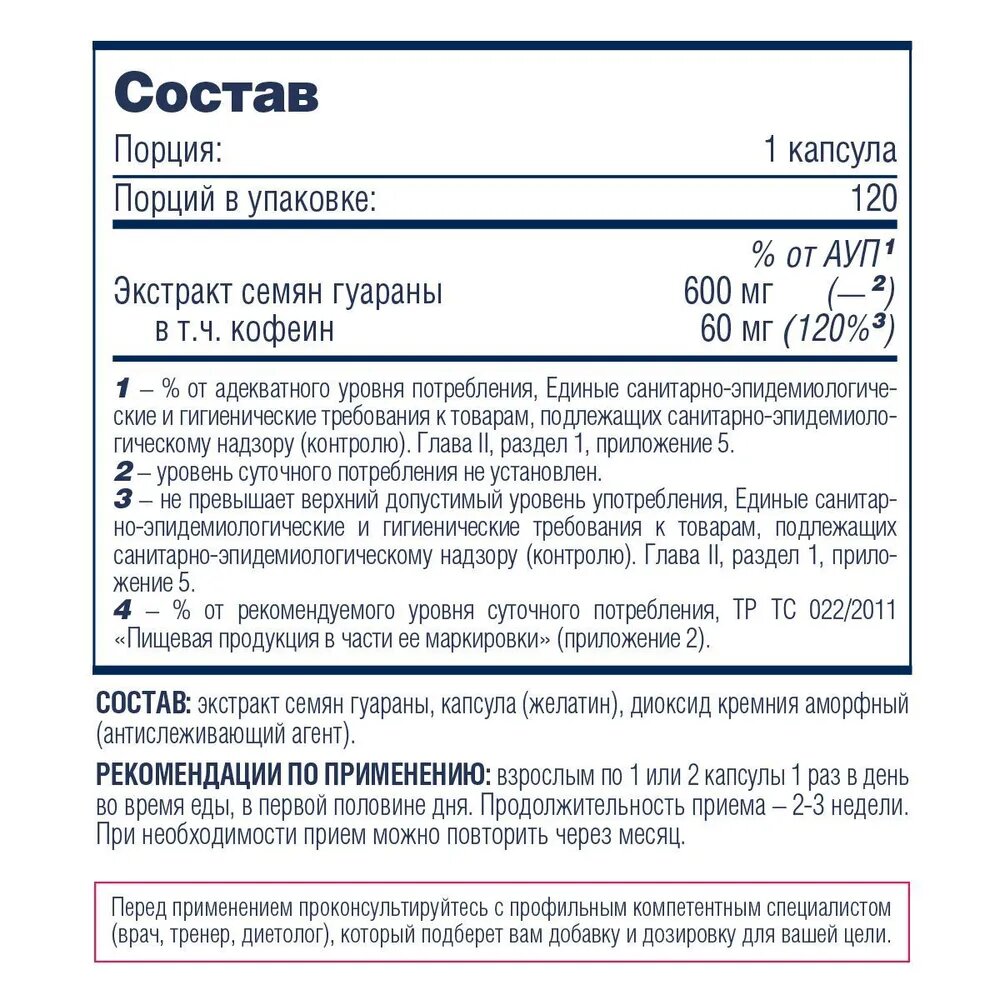Be First Guarana Extract Capsules 600 mg - 120 капсул, без вкуса