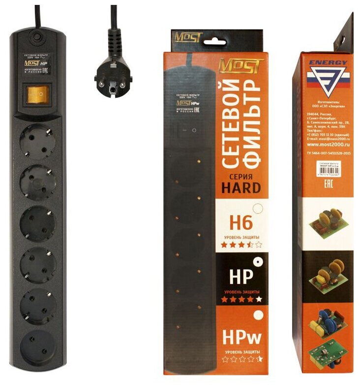 Most Сетевой фильтр Most HPw 2м (6 розеток) белый (коробка) 2 790 ₽