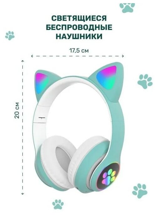 10 цен на Беспроводные наушники Bluetooth со светящимися кошачьими ушами STN-28 зеленые