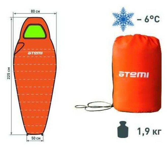 Спальный мешок туристический, 350 г/м2, -6 С, Atemi A1 информация: