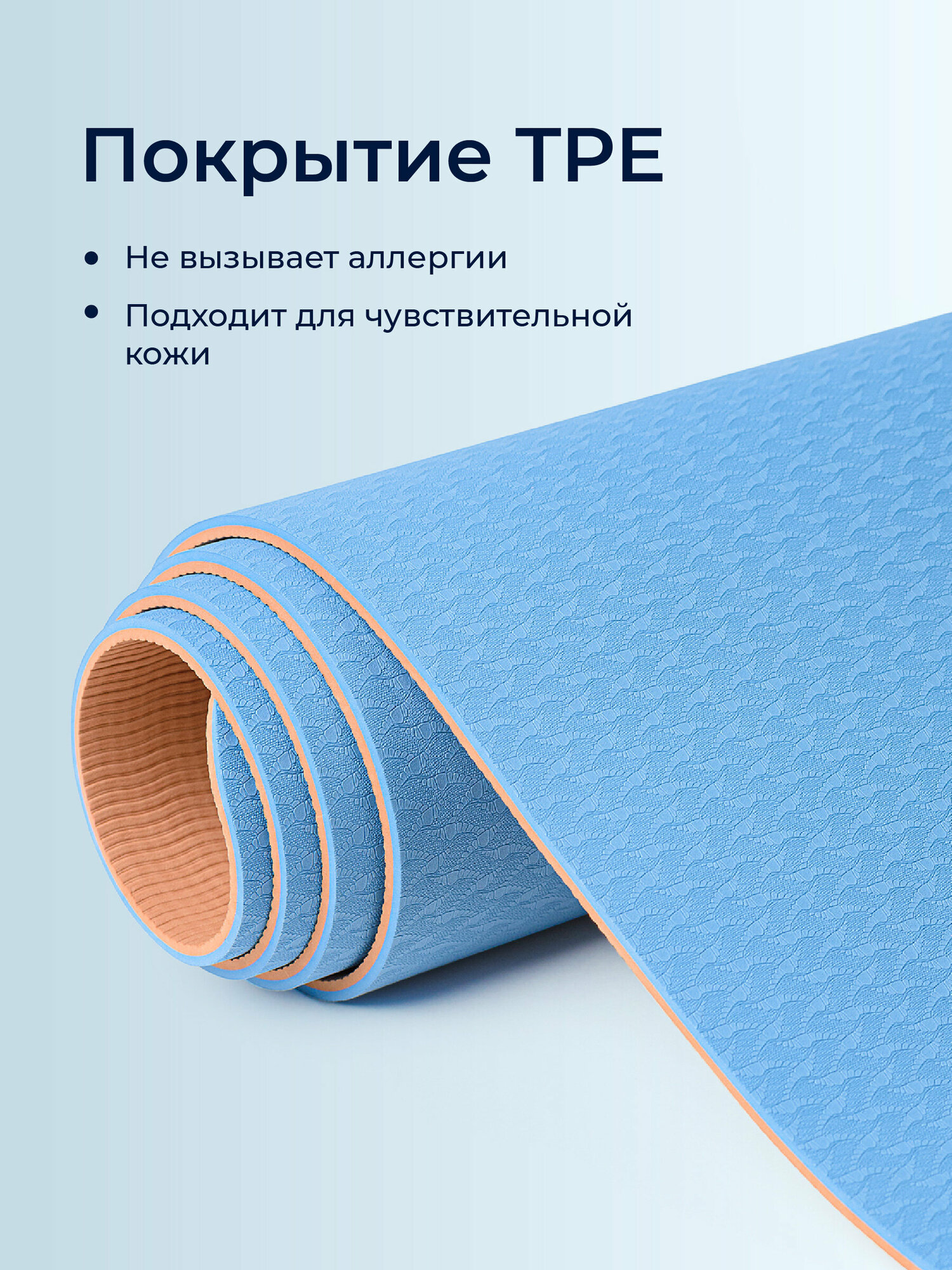 Универсальный коврик для фитнеса, йоги, спорта и гимнастики, нескользящий с покрытием TPE от Hamsa Yoga, цвет голубой 1 697 ₽