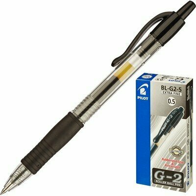 Отзывы на Ручка гелевая автоматическая с грипом PILOT G-2, черная, корпус прозрачный, узел 0.5 мм, линия письма 0.3 мм, BL-G2-5