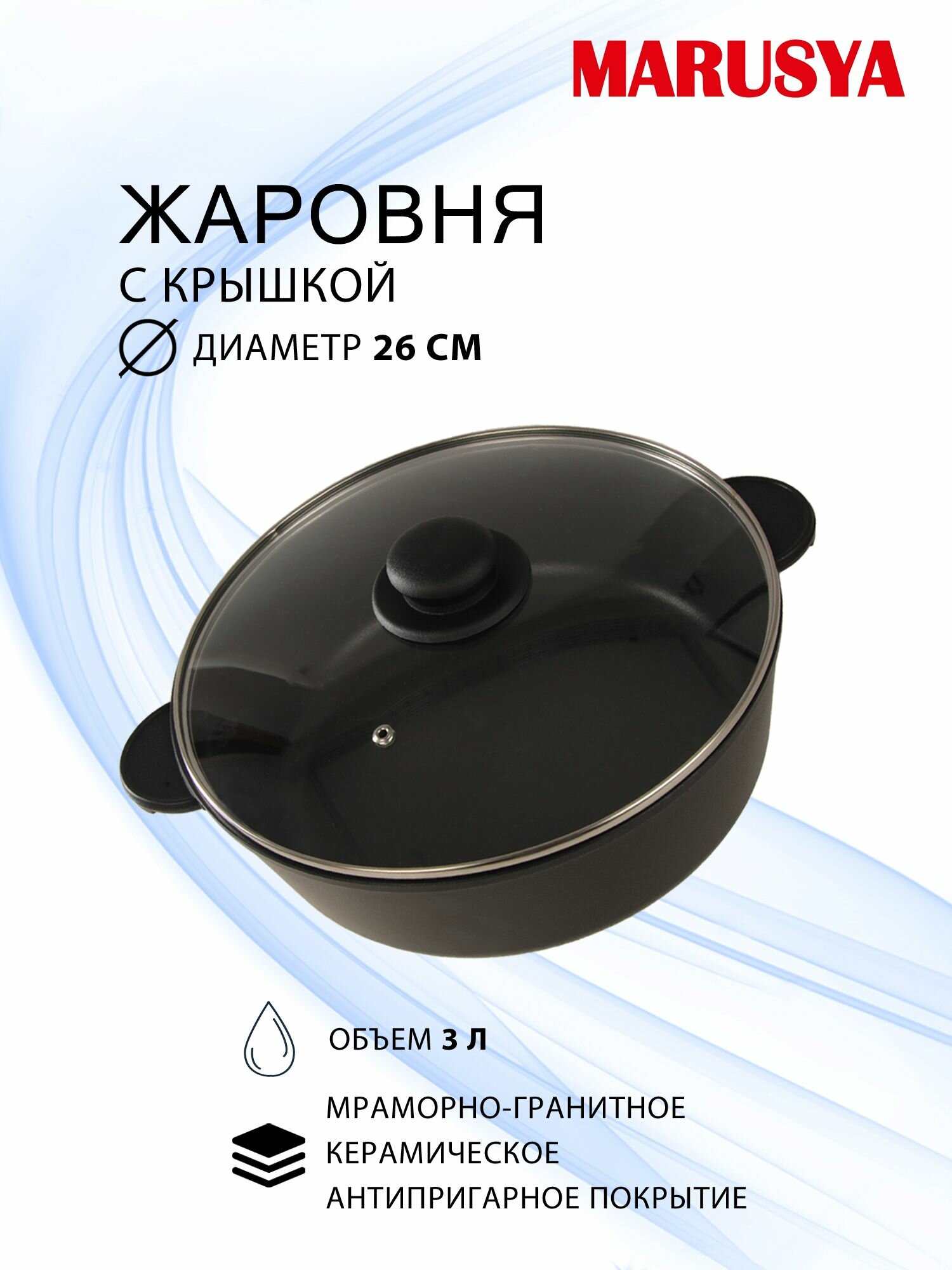 Жаровня Алюминий Литой А/П 260 3Л Стандарт Черный Ст/кр (3) Marusya 3326ж . информация: