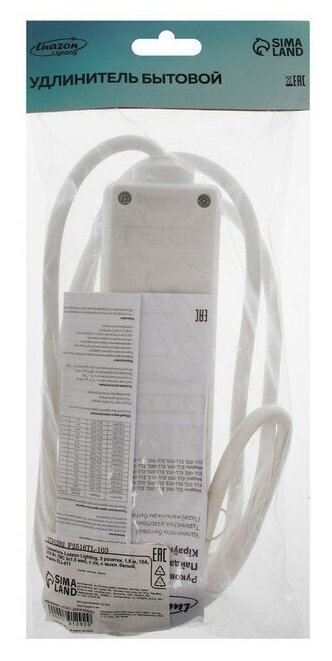 Отзывы на Удлинитель, 3 розетки, 1,8 м, 10 А, 2200 Вт, 3х1.5 мм2, с з/к, с выкл.