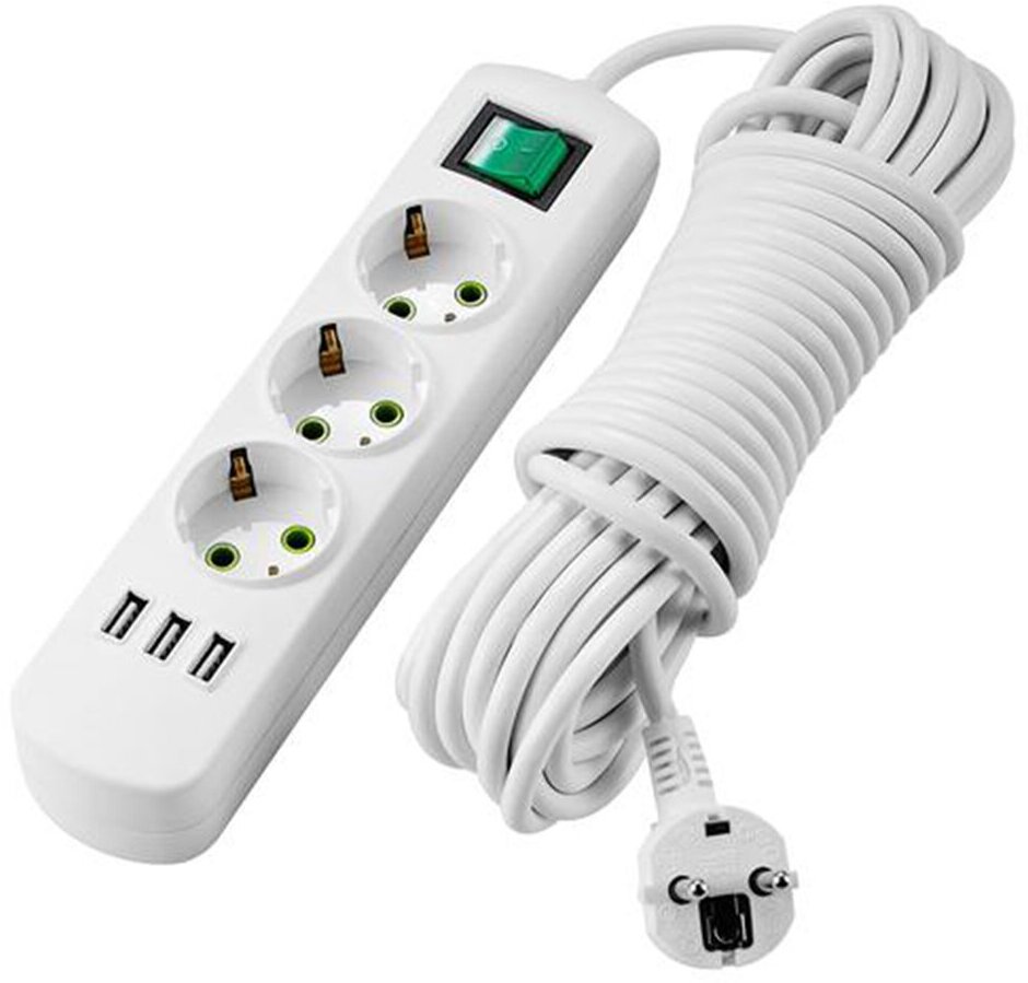 10 цен на Удлинитель с/з 3 входа 5 метров с выключателем c USB разъёмом LETITIA