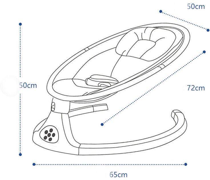 | Комплектация | Пульт дистанционного управления + батарейка (CR2025), Подвесные мягкие игрушки, Кабель для сети , Подушка под голову малыша , Ремни безопасности, Вкладыш для новорожденного, Москитная сетка, столик, силиконовая ложка. |