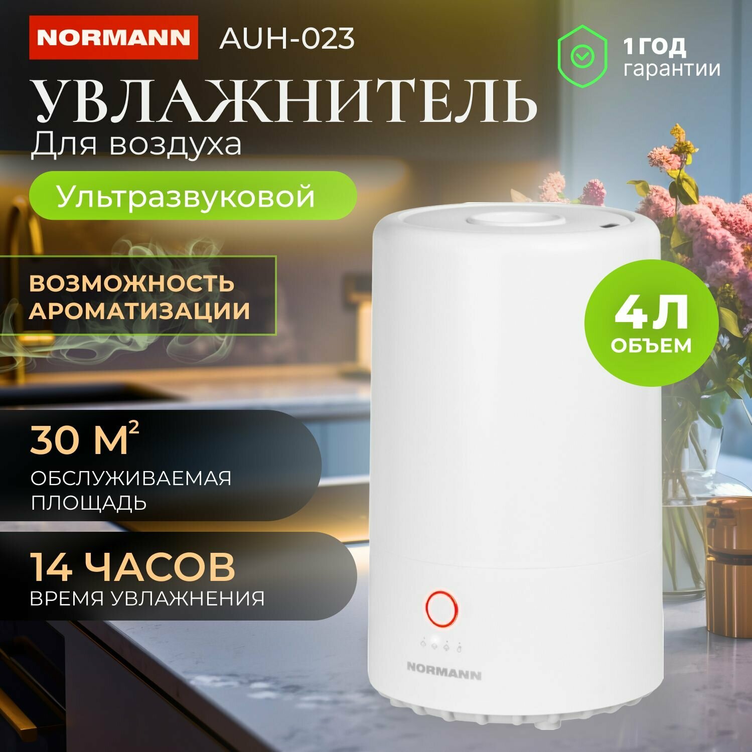 Увлажнитель воздуха Normann AUH-023 (25 Вт, 4 л, произв. 280 мл/ч, площадь 30 кв.м, верх заливка) информация: