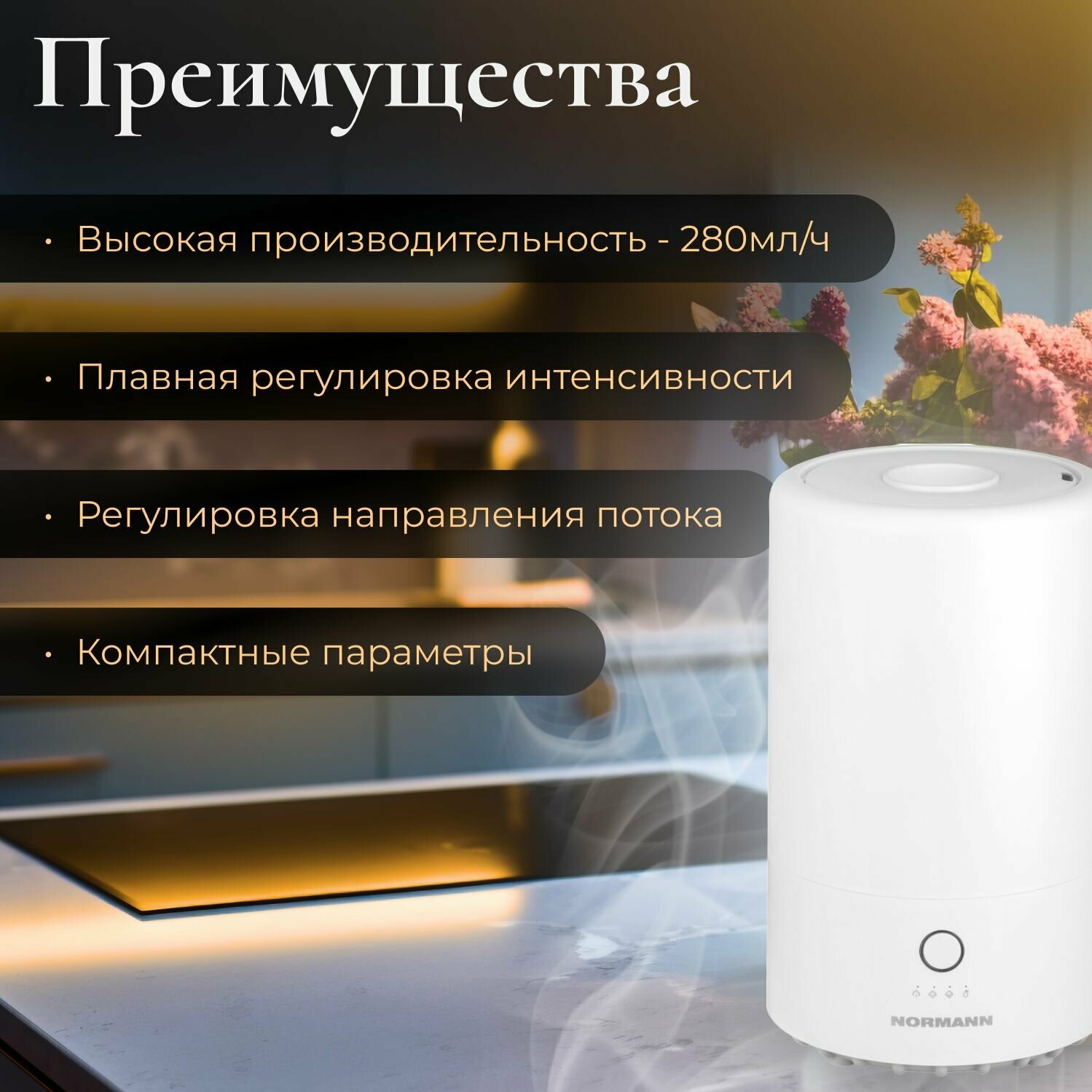 10 цен на Увлажнитель воздуха Normann AUH-023 (25 Вт, 4 л, произв. 280 мл/ч, площадь 30 кв.м, верх заливка)
