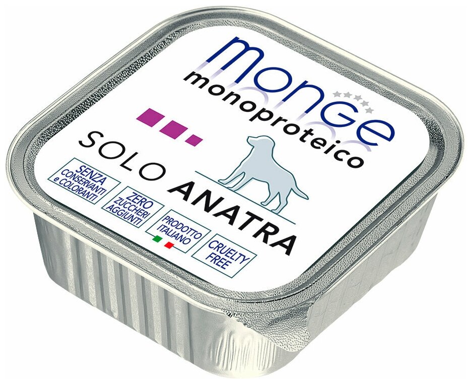 Влажный корм для собак Monge Dog Monoprotein SOLO ANATRA, беззерновой, утка, 3 шт. х 150 г информация: