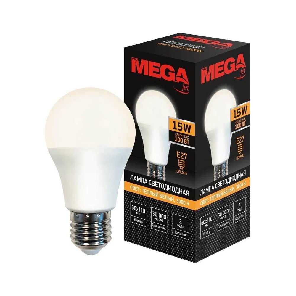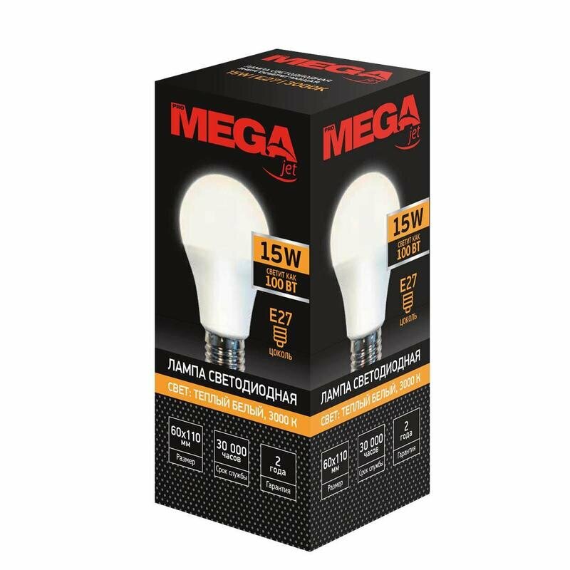 Лампа светодиодная Mega E27 15W 3000K груша информация: