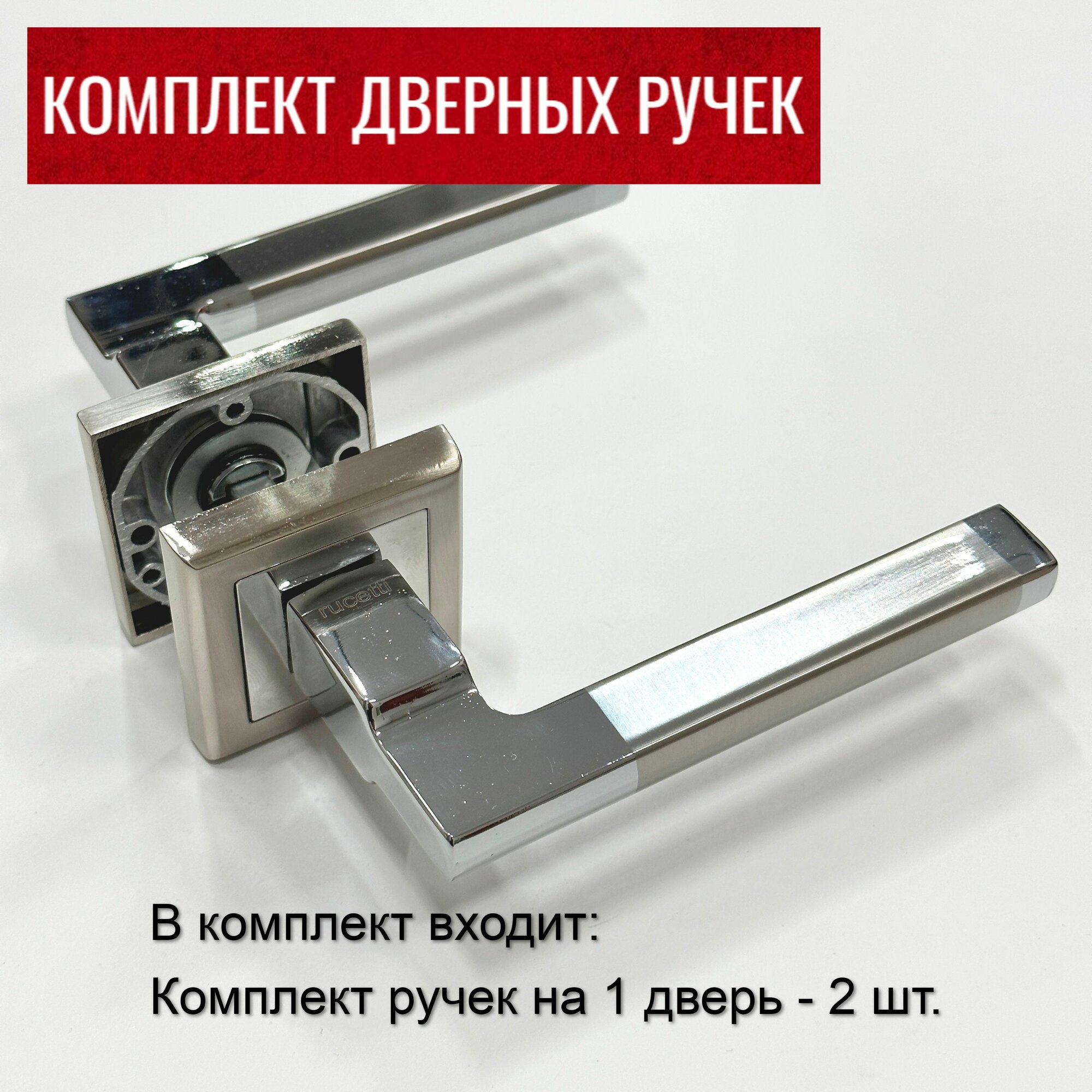 Ручка дверная межкомнатная хром блестящий с защелкой, заверткой и ключами комплект