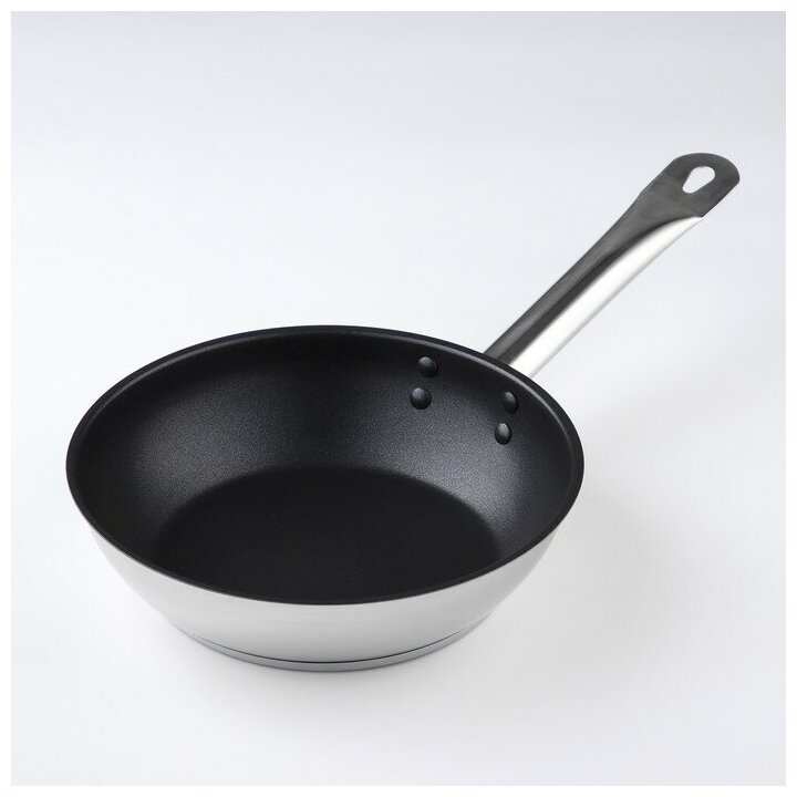 Сковорода "Общепит", диаметр22 см, толщина корпуса 0,6 мм, дно 3,5 мм, с теплораспределителшьным слоем, антипригарное покрытие, индукция, цвет металлик