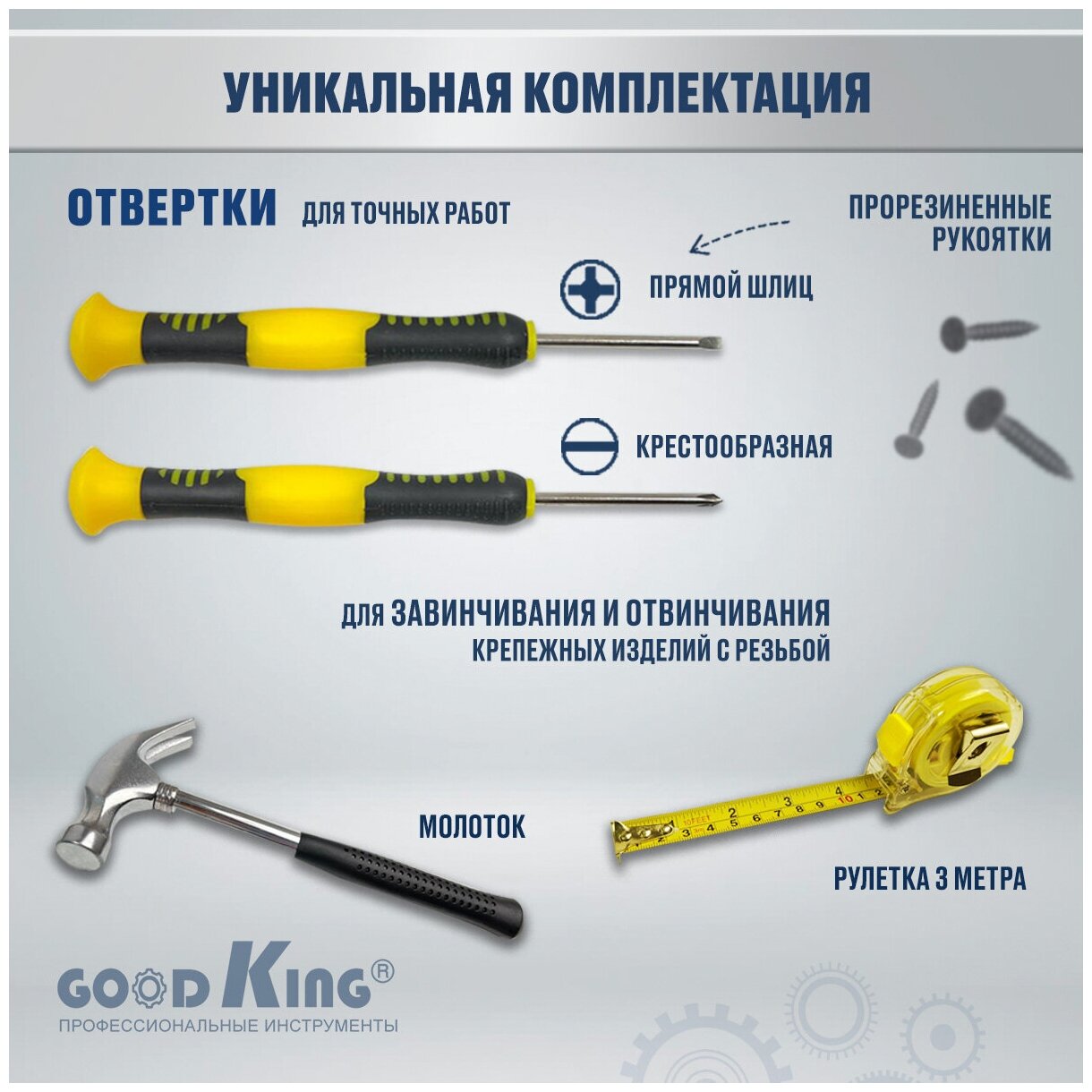 Аккумуляторная дрель-шуруповерт 12В. 1.5Ач GOODKING EC-1201104 с набором инструментов 104 предмета, шурик, набор инструментов, для дома, для дачи