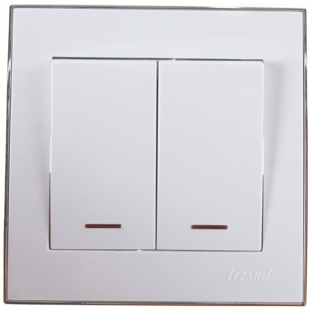 Отзывы на Lezard RAIN Выключатель двойной с подсветкой белый с бок. вст. Хром 703-0225-112