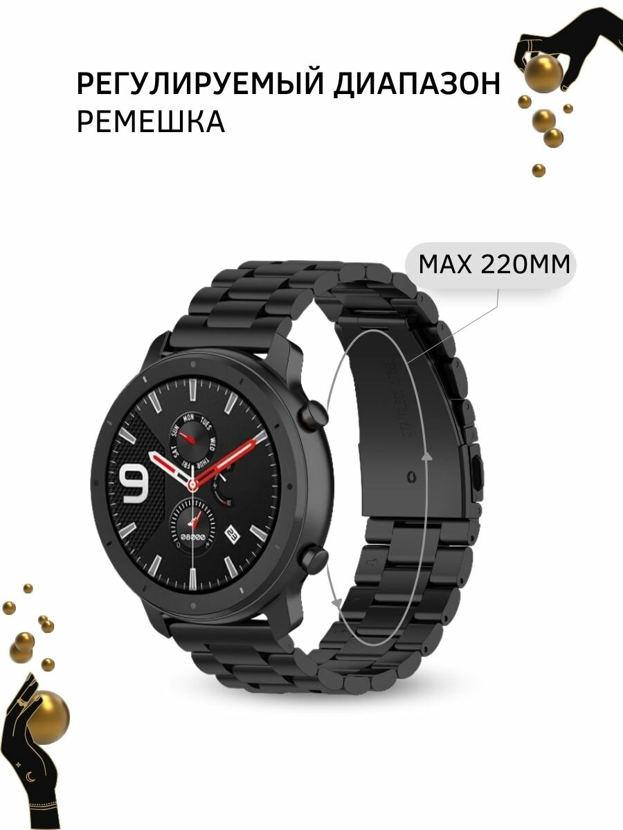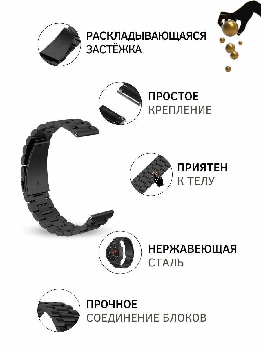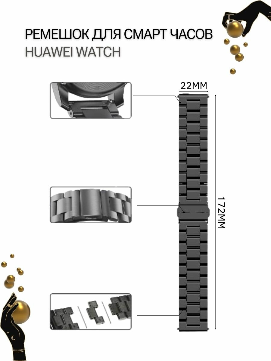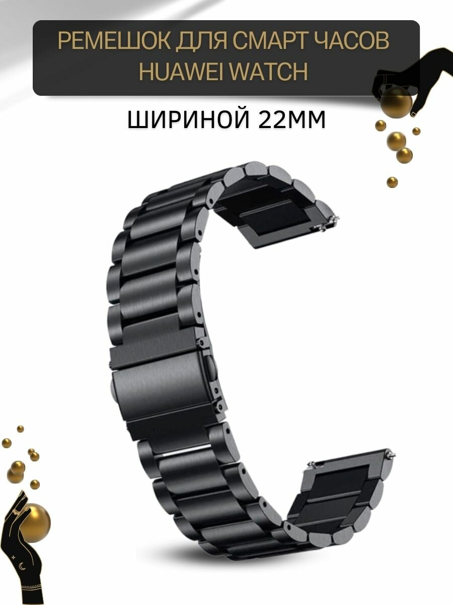 Металлический ремешок (браслет) для Huawei Watch 3 / 3Pro / GT 46mm / GT2 46 mm / GT2 Pro / GT 2E 46mm (ширина 22 мм), черный информация: