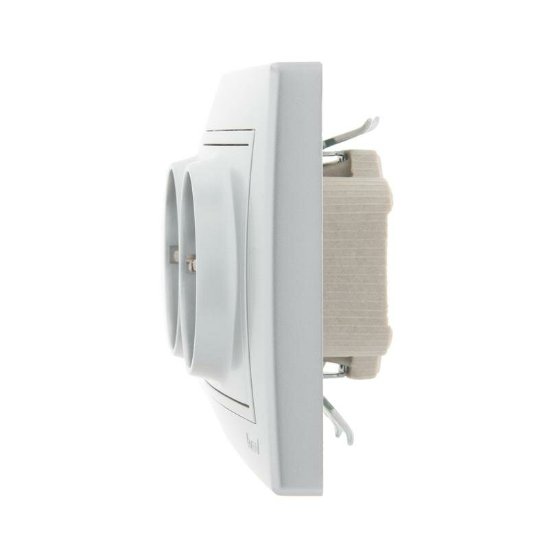 Розетка LEZARD MIRA двойная с заземлением керамика белый с серой вставкой 650 ₽