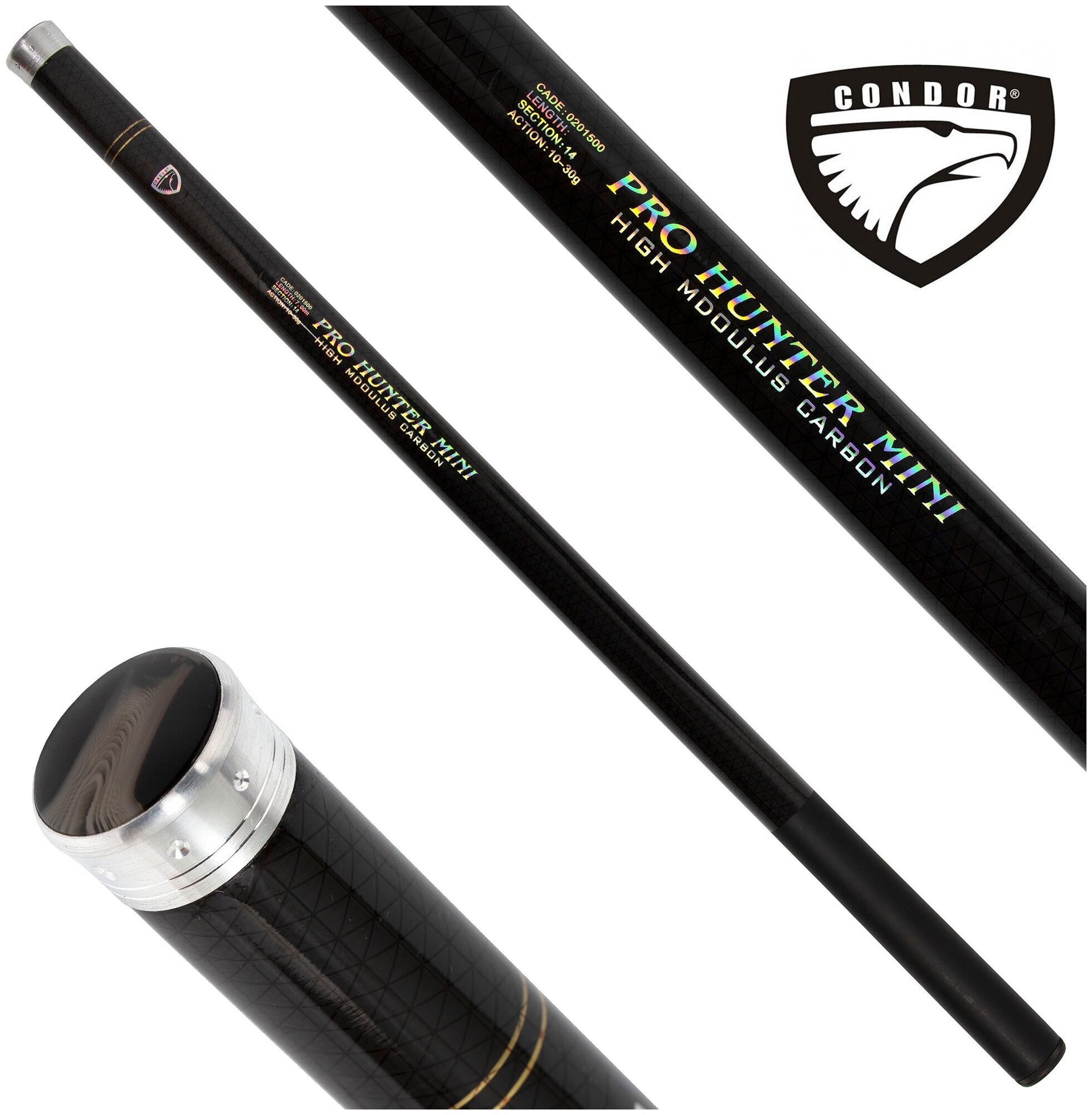 Удилище Condor Pro Hunter mini без колец, длина 6 м, тест 10-30 гр, carbon информация: