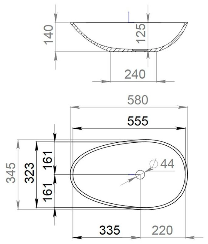 Раковина накладная из натурального камня Black Swan, Espera (59x31)