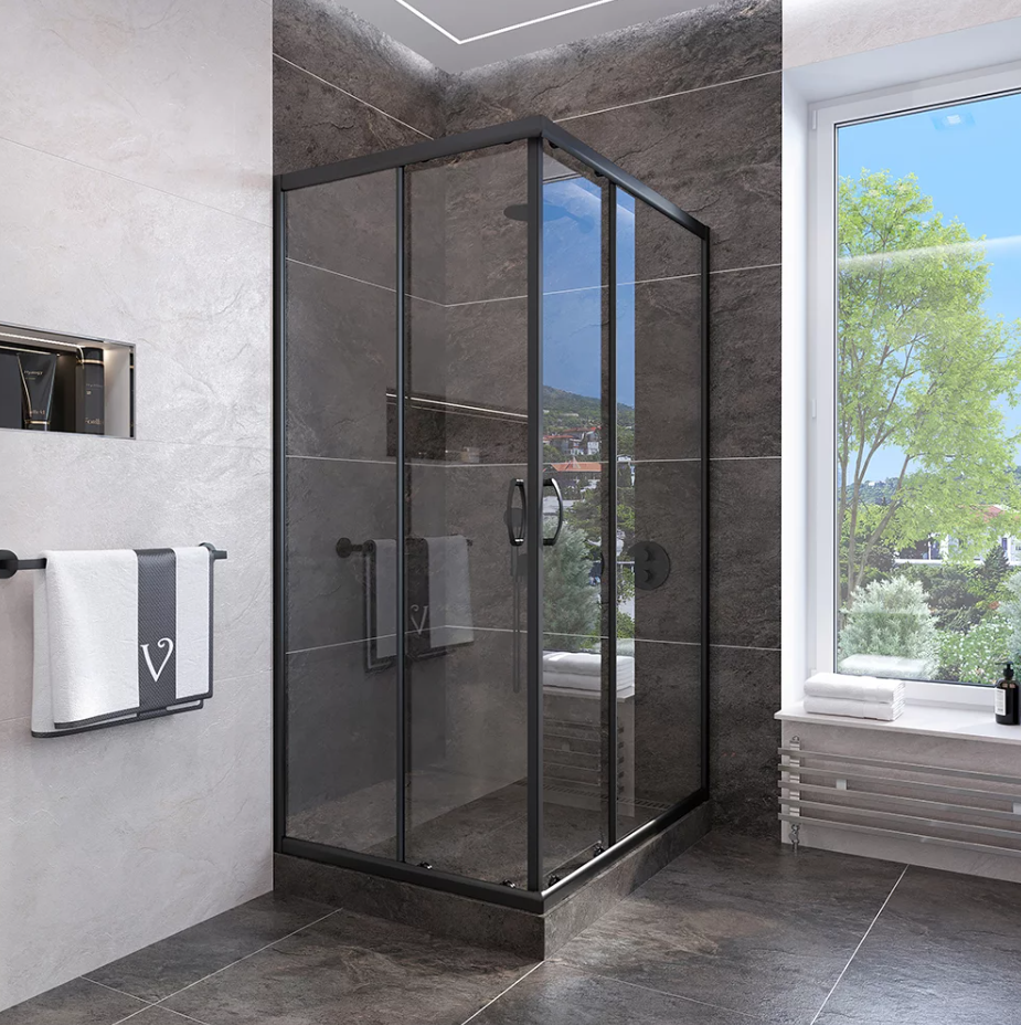 Душевой уголок квадратный Veconi RV-113B 90*90 см., профиль черный матовый, прозрачное стекло