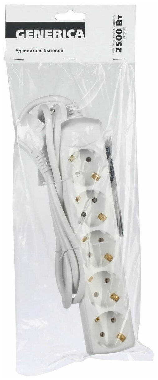 Удлинитель 5гн с 3/К 1,5м белый ПВС 3х1мм2 IP20 GENERICA IEK