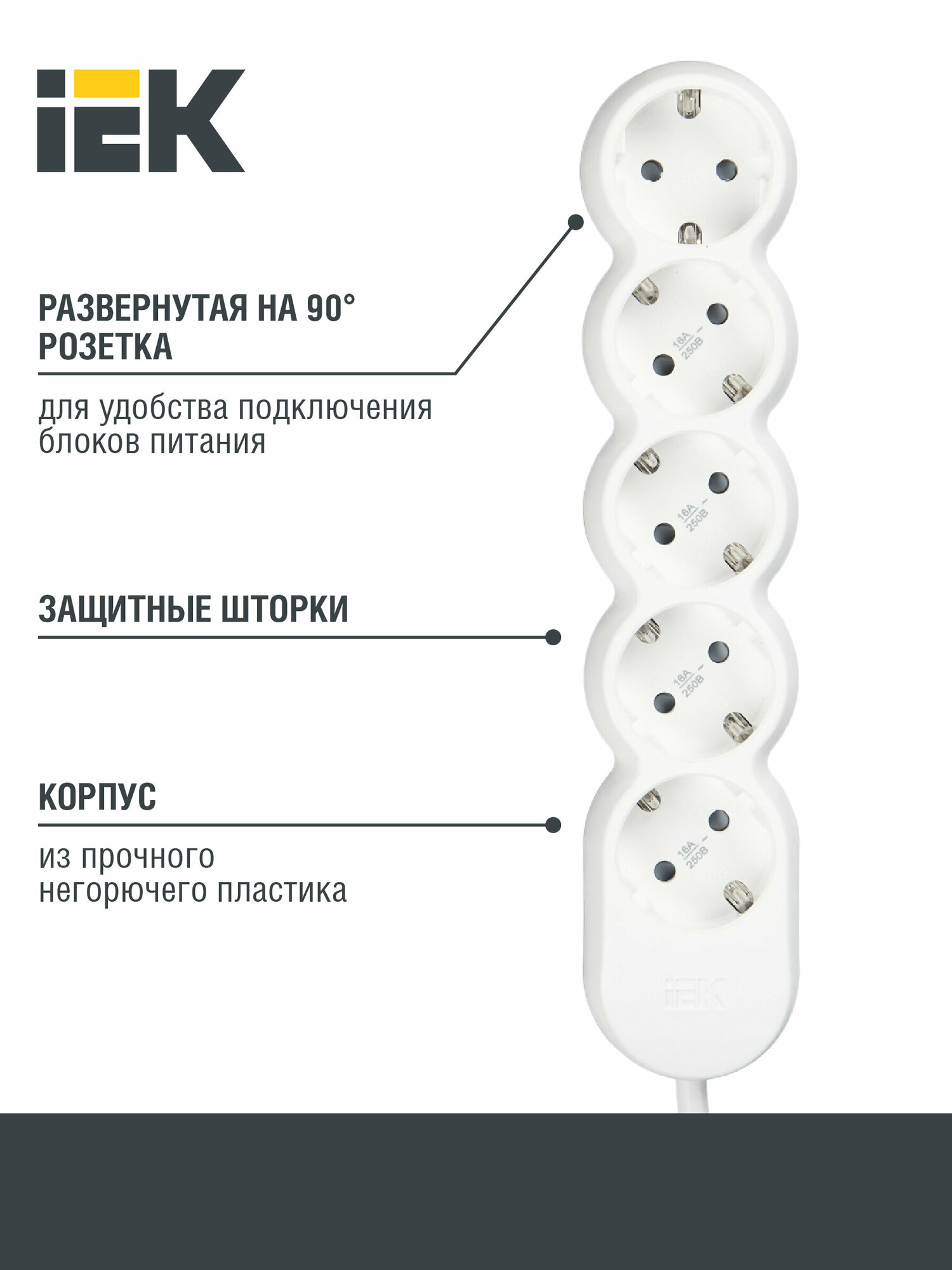Удлинитель IEK WFP10-16-05-05-ZK-K, 5 розеток, 5 м, с/з, 10А / 2200 Вт