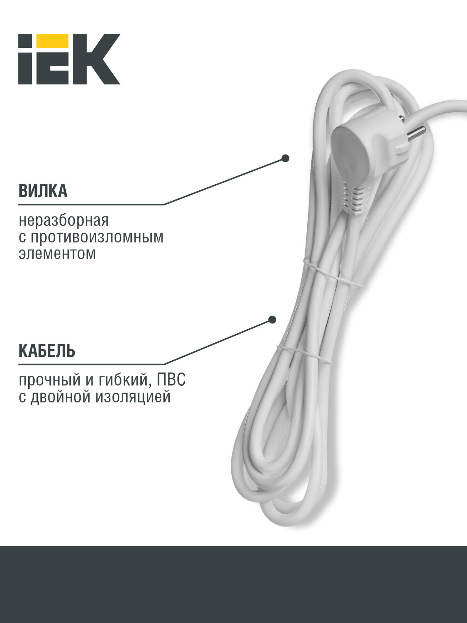 Удлинитель IEK Uno У05, ПВС 3 x 1,5 мм², с заземлением, 5 розеток, 3 м, белый 595 ₽