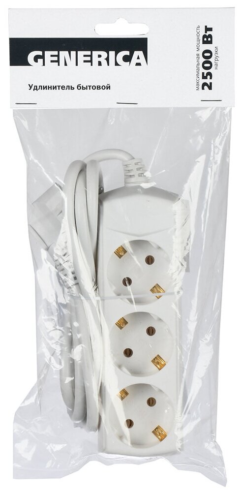 Удлинитель У03 3 места 2P+PE/3м 3х1мм2 10А/250В GENERICA