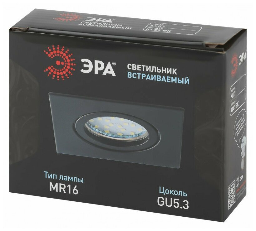 | Комплектация | Светильник встраиваемый ЭРА Luna MR16 с патроном GU5.3 черный |