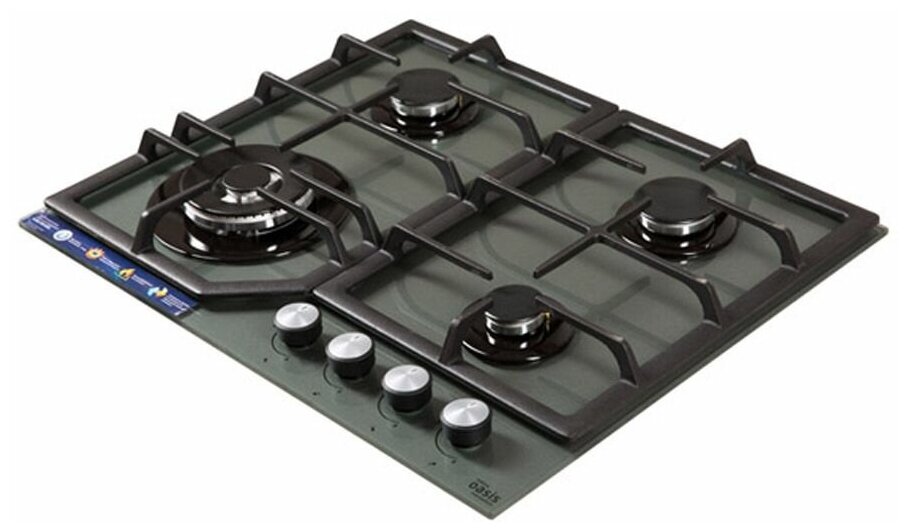 Отзывы на Варочная панель газовая встраиваемая Оазис P-GGT F закаленное стекло серый 97х610х510мм 4 конфорки 2 решетки / газ-контроль / электроподжиг / газовая