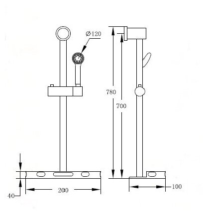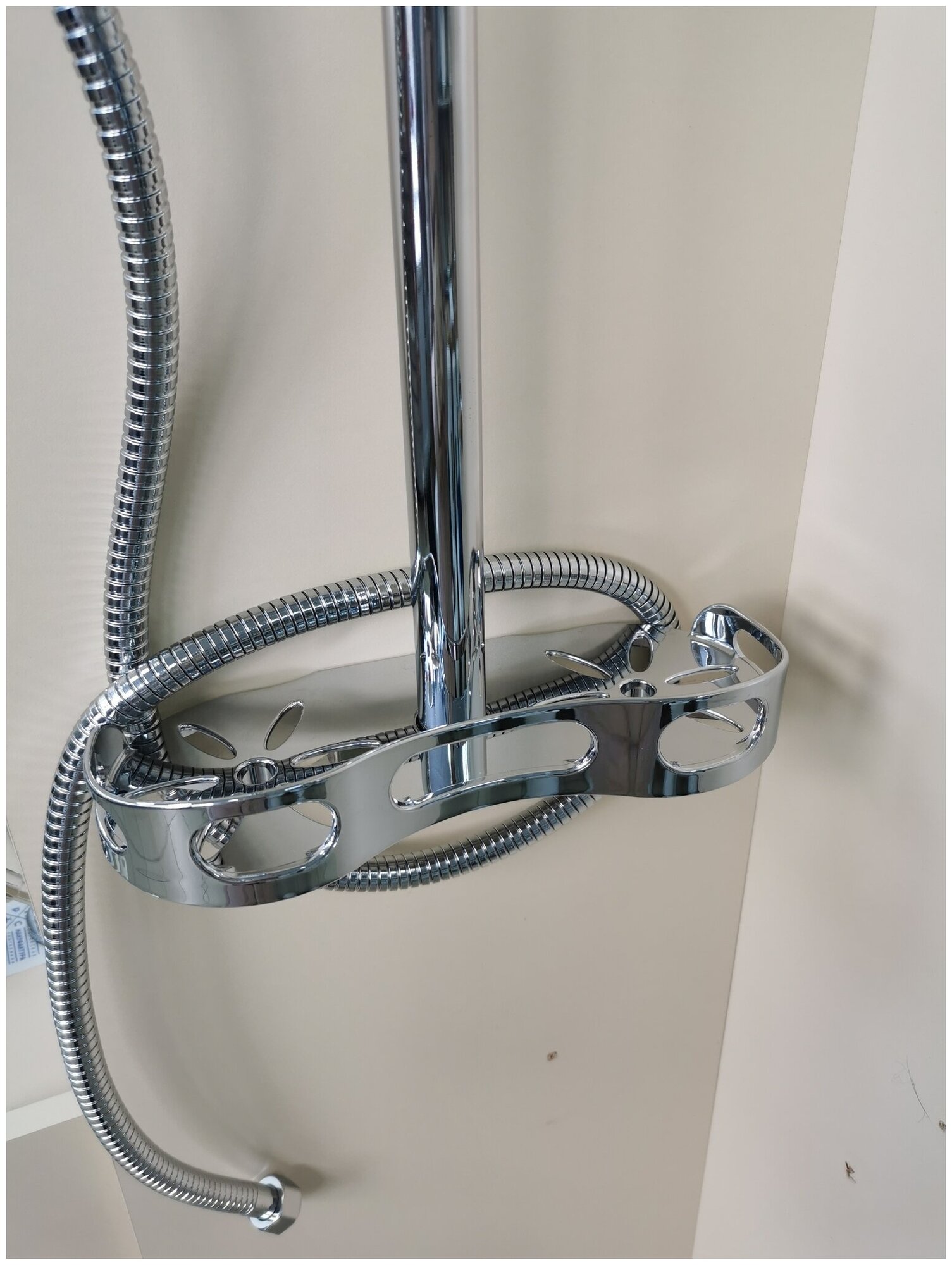 Стойка для душа с лейкой Цвет покрытия корпуса: хром В комплекте: мыльница, полочка, держатель для душа крепления