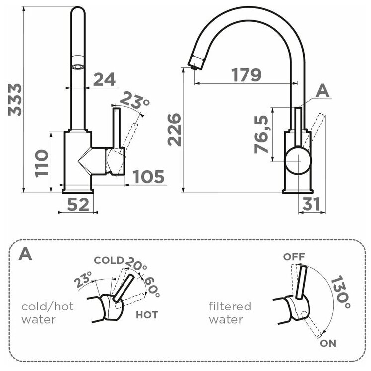 | Тип излива | для фильтрованной воды / поворотный |