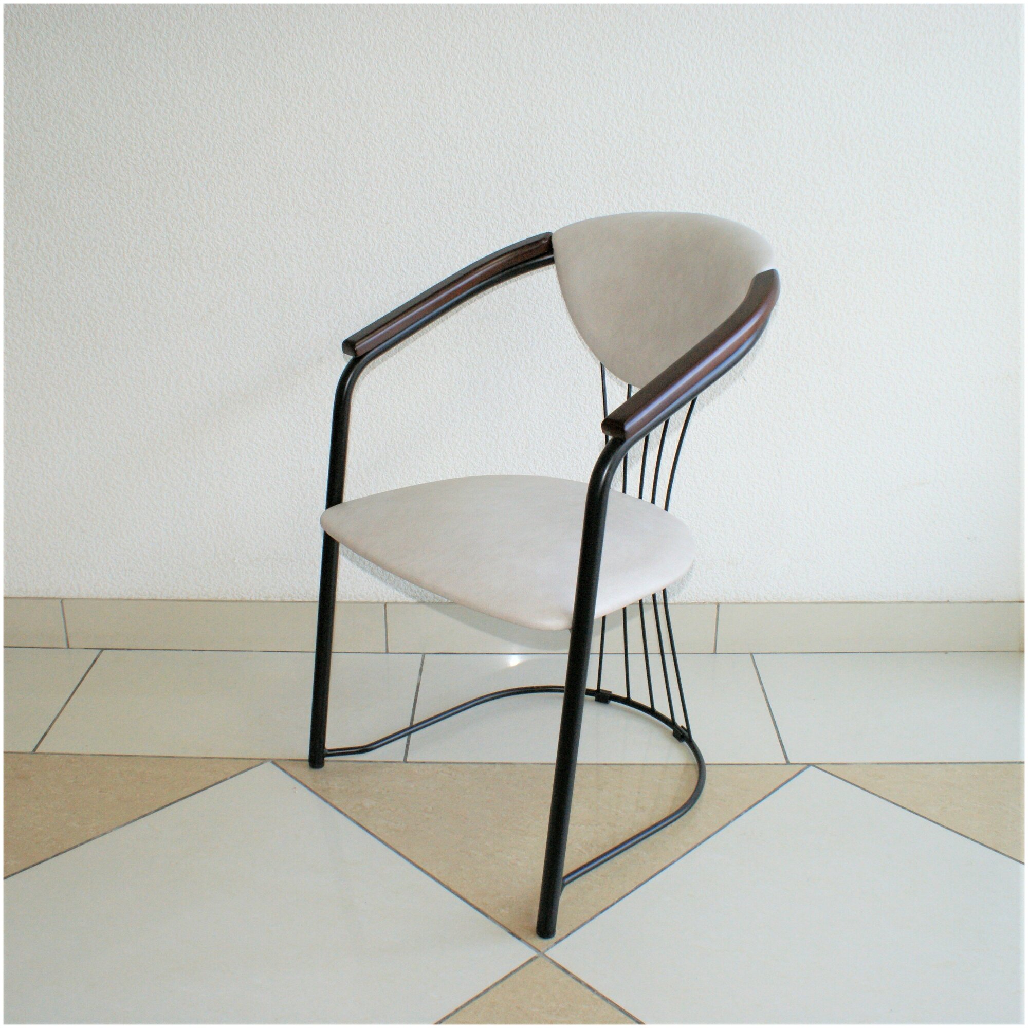 Кресло стул для кухни со спинкой с подлокотниками лаунж лофт чилл бежевое