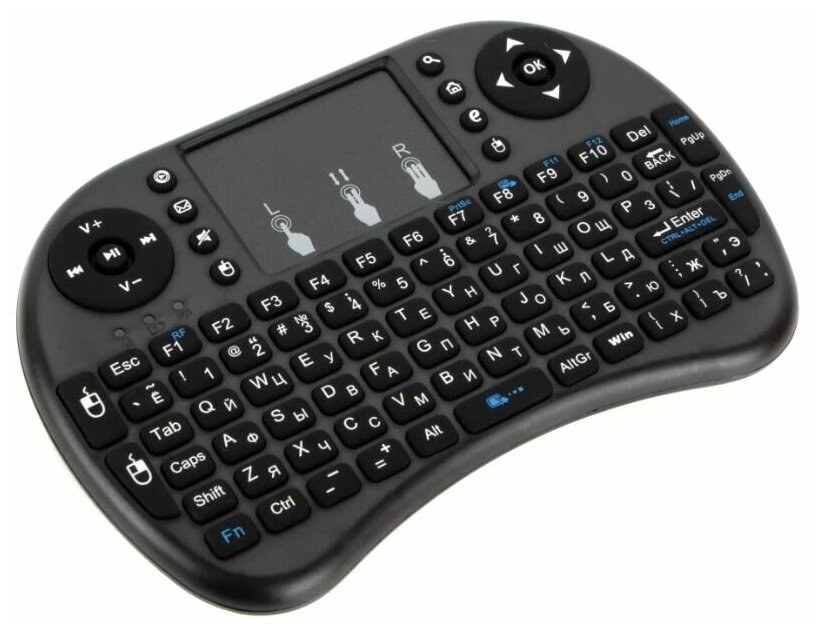 Беспроводная мини клавиатура и мышь с RGB подсветкой (с тачпадом) i9 для телевизора, тв приставки, проектора, ПК (Черная)